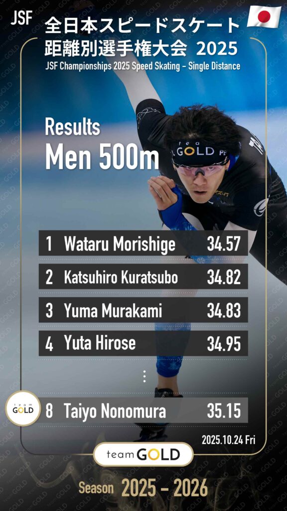 <SD男子 500m> 2025.10.24 第32回全日本スピードスケート距離別選手権大会
