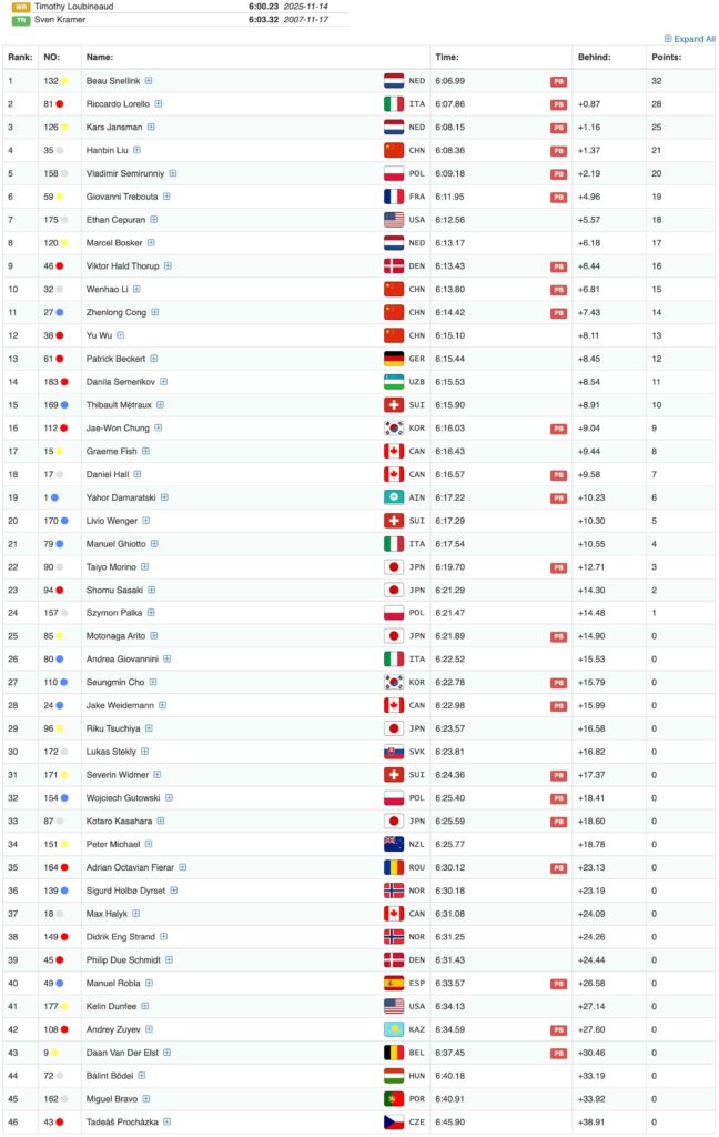 <男子 5000m Div.B> 2025.11.21 ISUワールドカップ#2 カルガリー