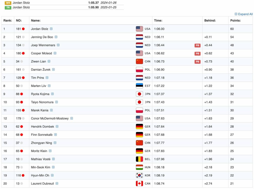 <男子 1000m Div.A> 2025.11.21 ISUワールドカップ#2 カルガリー