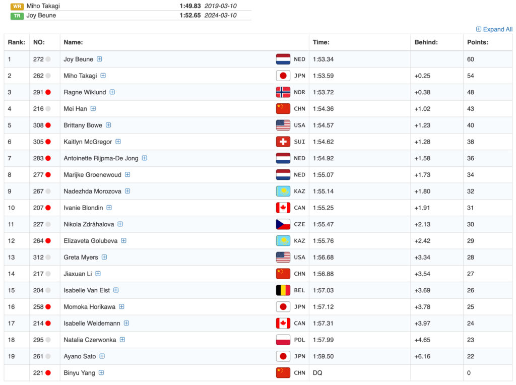 <女子1500m Div.A> 2026.1.23 ISUワールドカップ#5 インツェル