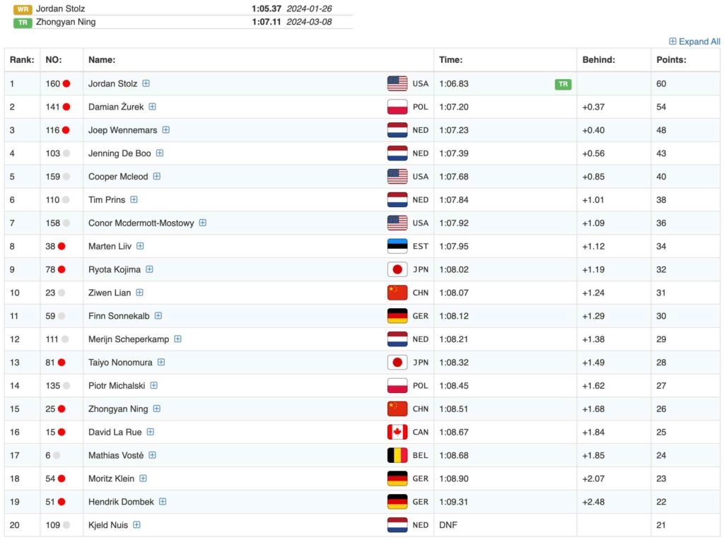 <男子1000m Div.A> 2026.1.24 ISUワールドカップ#5 インツェル
