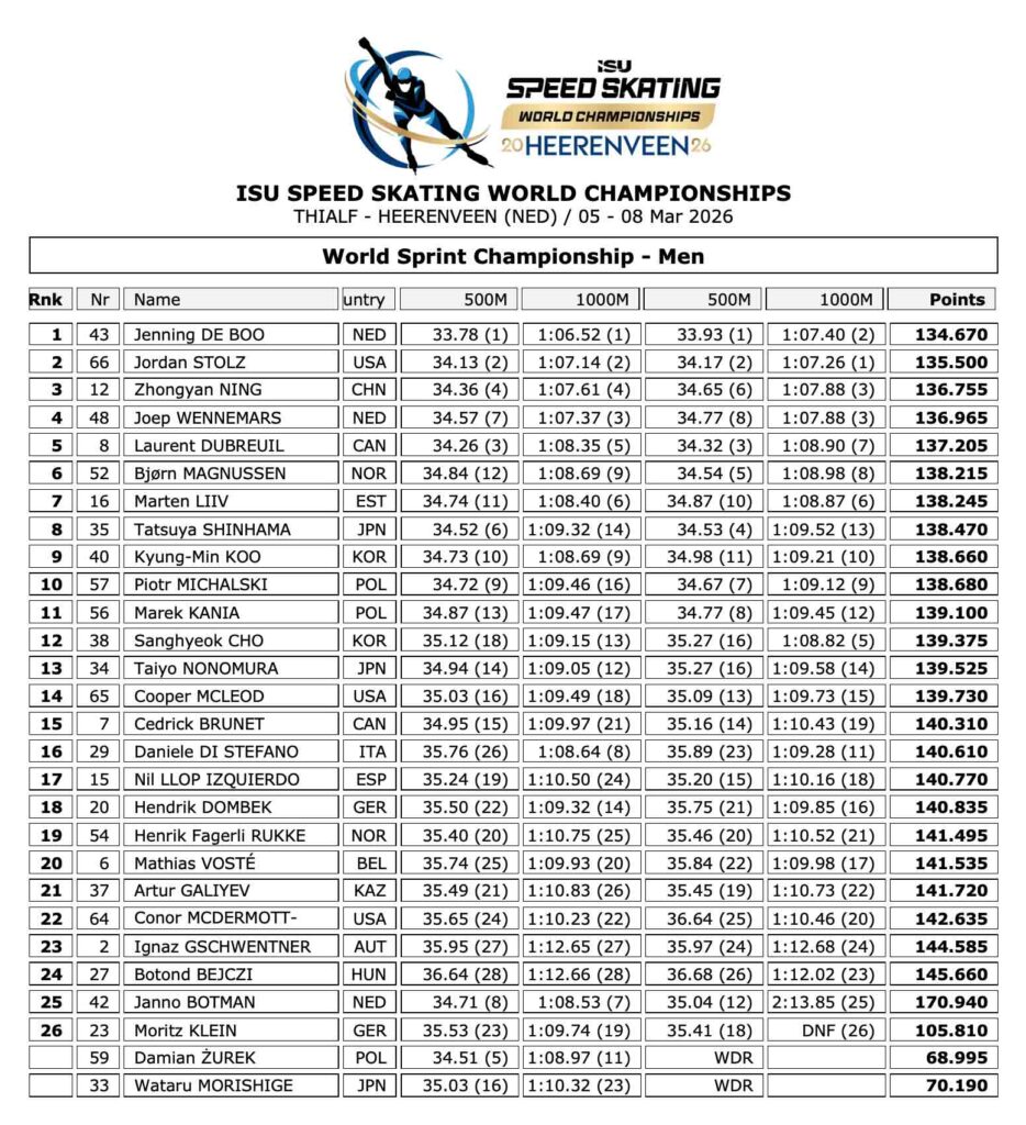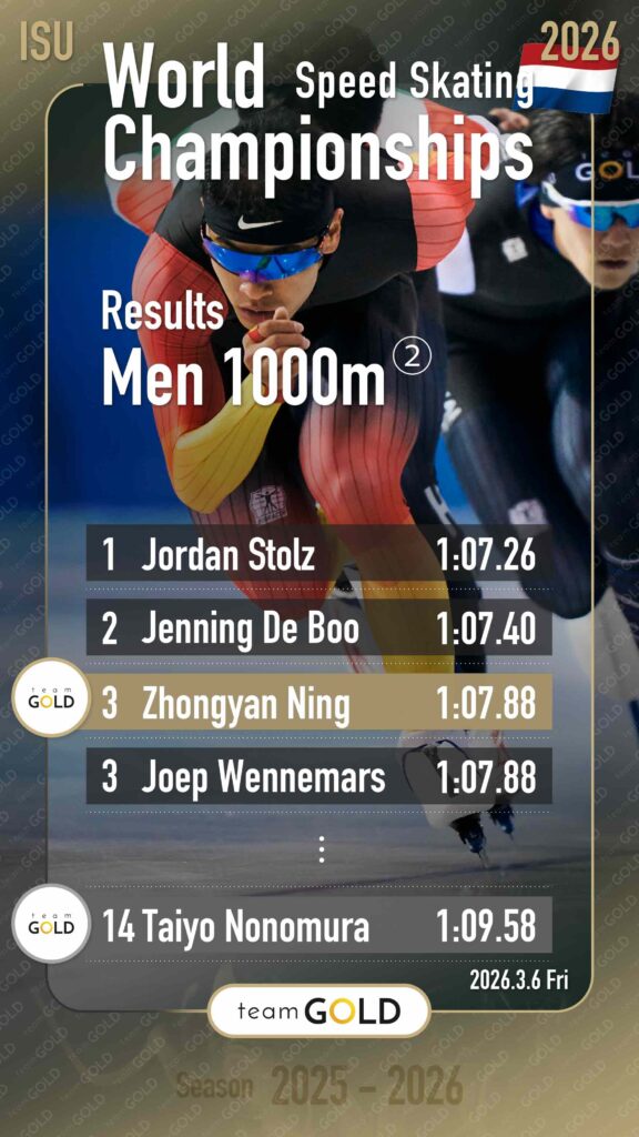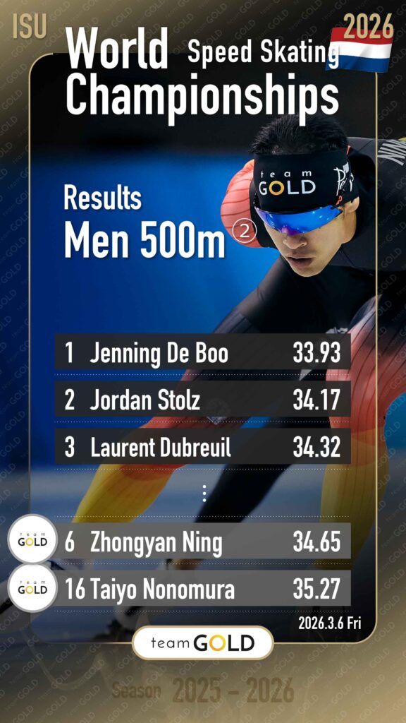 <男子スプリント> 2026.3.6 ISU 世界スプリントスピードスケート選手権 2026