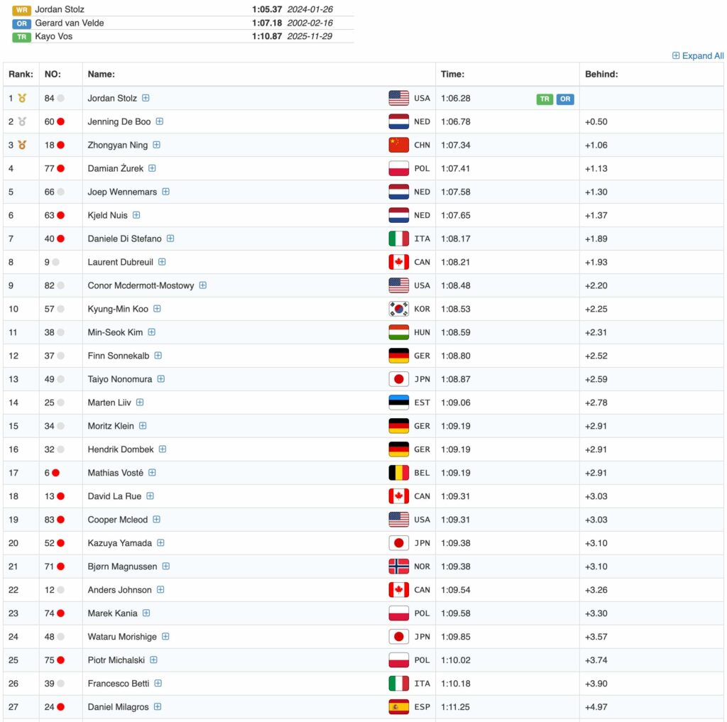 <男子1000m>ミラノ・コルティナ2026冬季オリンピック