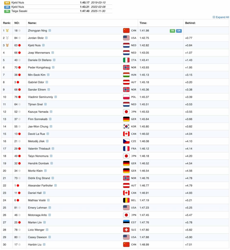 <男子1500m>ミラノ・コルティナ2026冬季オリンピック